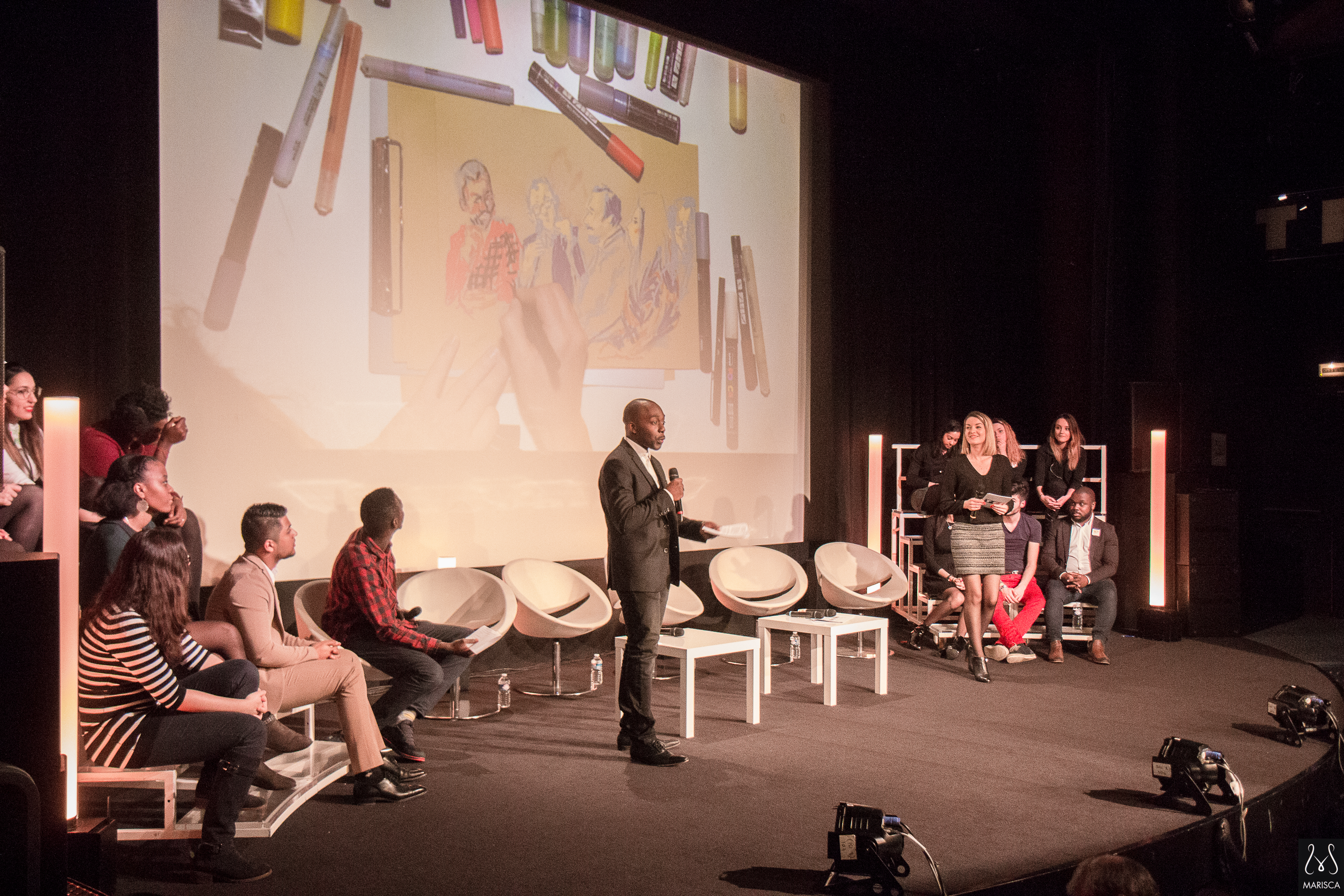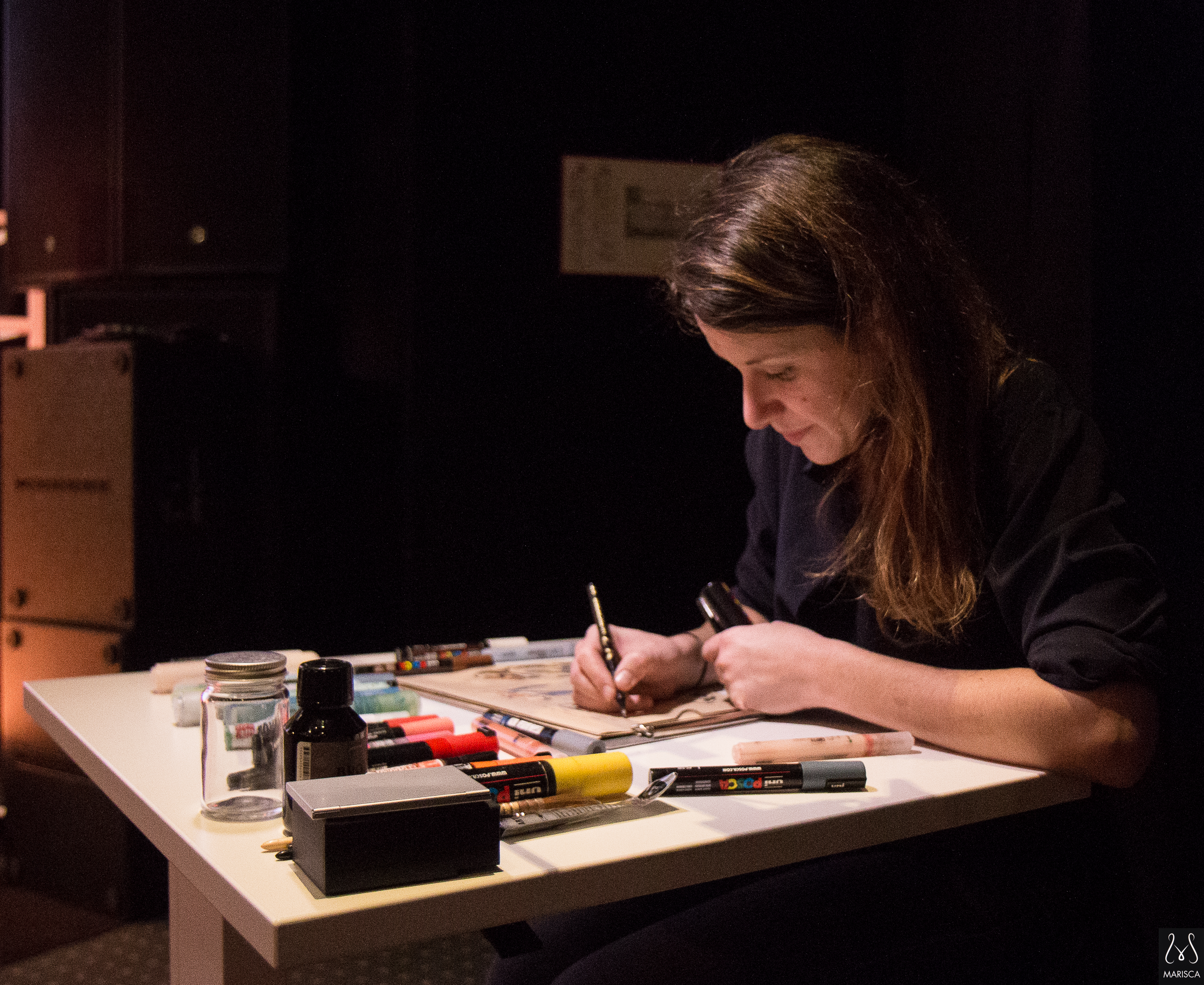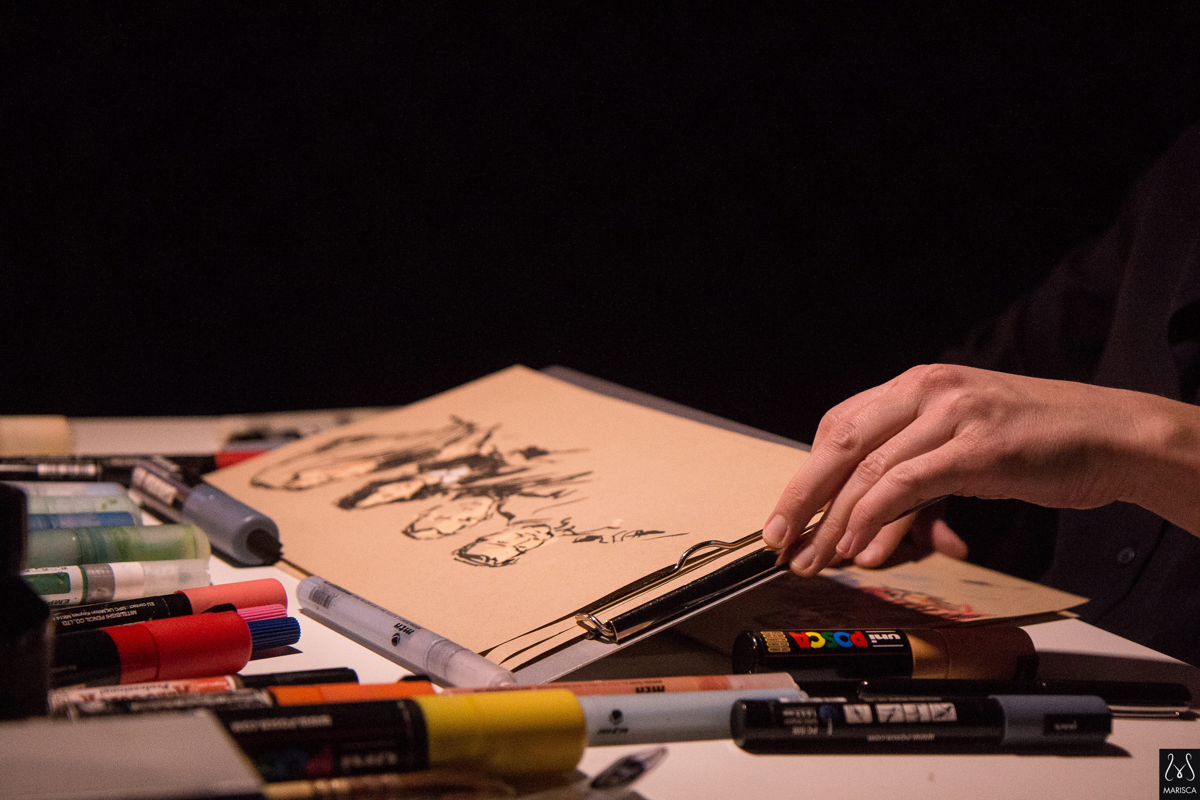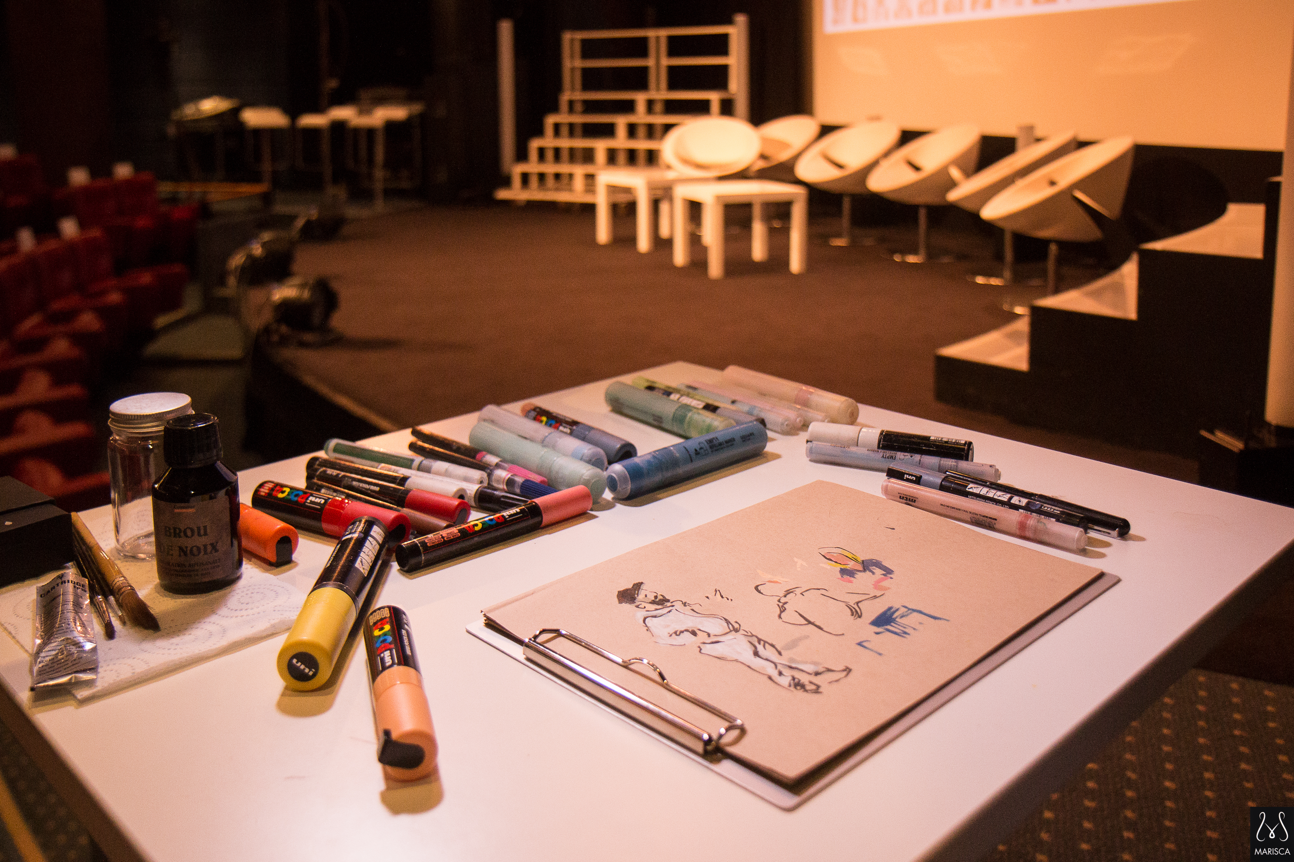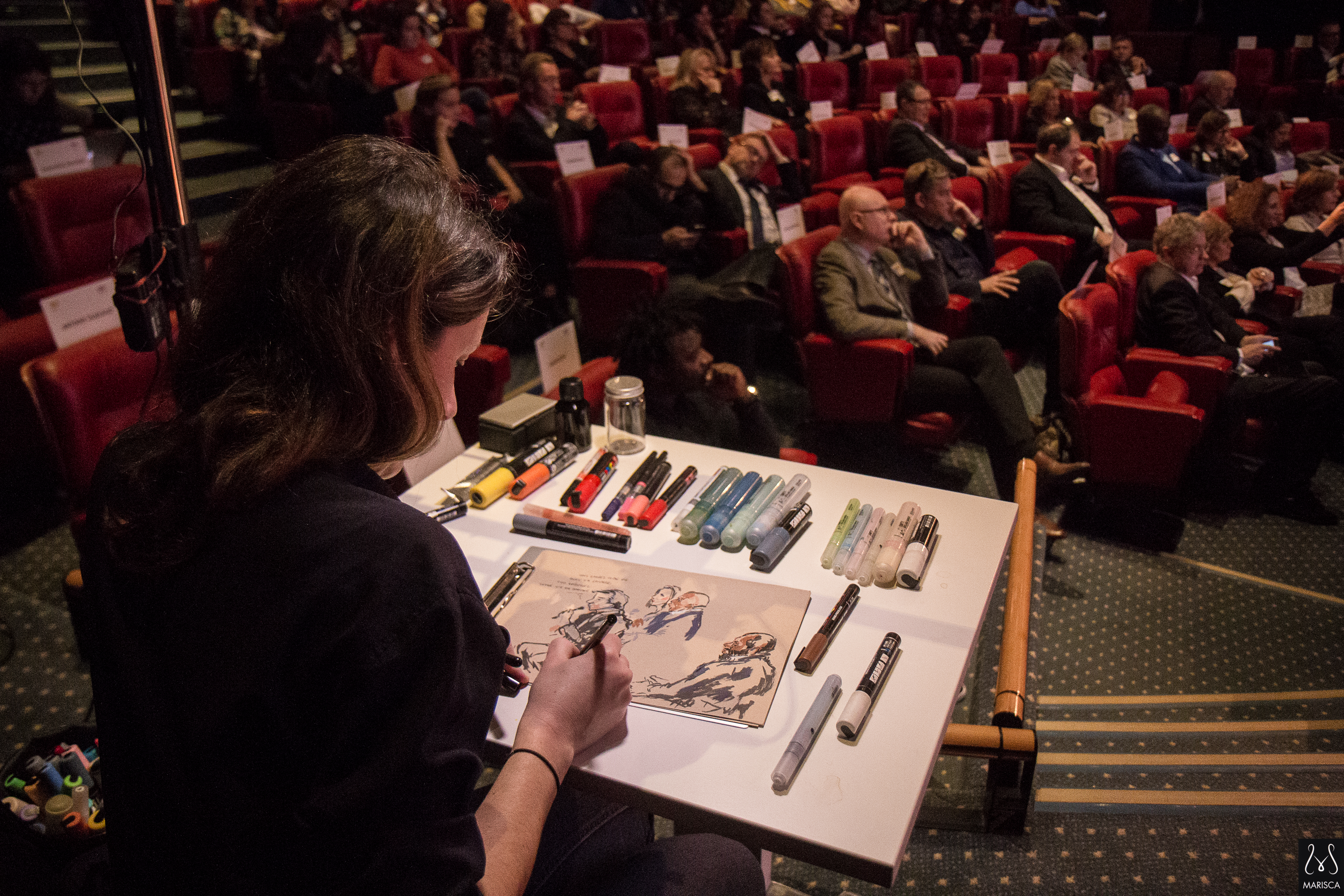 Dessin en direct, croquis sur le vif, habillage scénique événementiel | photo : mariscaphotographe